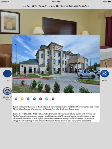 Book BEST WESTERN PLUS Burleson Inn & Suites in Burleson, TX quicker and easier than ever before. With the hotel’s app powered by BingoTravel Apps, connecting with this property directly and simply has never been more convenient. Do everything you need on your smart phone! This single property app lets you take a look at hotel features and amenities and glimpse useful photos -- anytime you want. And of course, you can book directly with this powerful application. Even better, do things around the clock without waiting on hold or dealing with a call center. To connect with this hotel now, download this app.