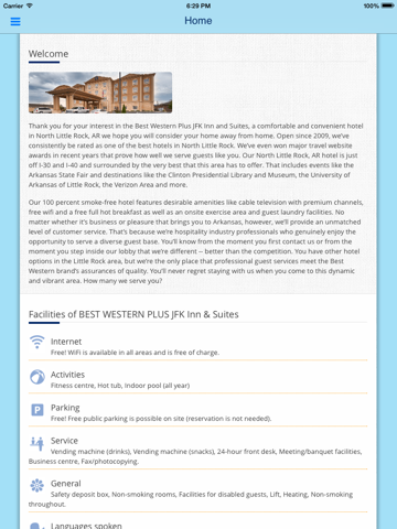 The Best Western Plus JFK Inn and Suites hotel in North Little Rock Arkansas is waiting for you! Book this hotel with greater ease and quicker than ever before. And do everything right from you phone! With this single property app brought to you by BingoTravel Apps you can examine hotel features, view hotel amenities and look at hotel photos -- whenever you want. And for booking, there’s no easier way to get the best rate. Even better, the app is always here for you and means you never have to wait on hold again. Download the app for this hotel and see how easy hotel booking can be.