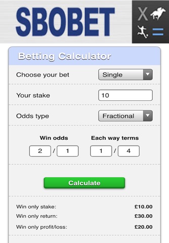 The app is a simple to use bet calculator. It provides the easiest way to calculate your winning and find the winning per odds.