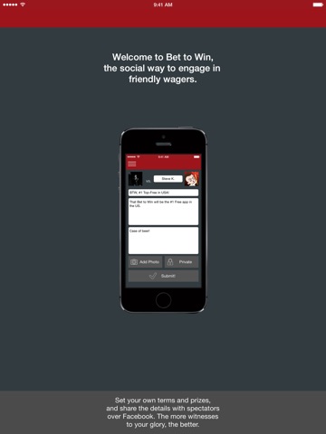Select your opponent, describe the terms, define the antes and get betting. Bet to Win gives you one place to make your bets, post pictures and keep the smack talk going, all with the option to share with your friends on Facebook. So what’s your bet?