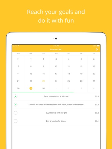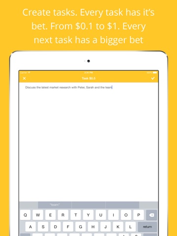 Create tasks. Every task has its bet. The bet of the first task is $0.1. The next task has a bigger bet. The maximum bet is $1. It helps you do really important things first and not to plan too much for a day. If you get things done, you win and save your money. If you don’t, you lose your bet. It helps you get all things done.