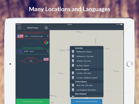 - The app knows details of 7500+ exchange stores located in USA, UK, Australia, New Zealand and Indonesia (Bali) - new locations are added all the time.