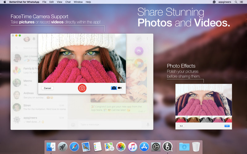 I tried many Apps for WhatsApp, but I have to say this one is definitely the best. It has all relevant features: Dark Theme, Camera Support… and the best part: you can even send Voice Messages!! As far as I know there is no other App that can do this. Also it is so elegant and shows so much love to detail, Steve would have loved it. ;-)