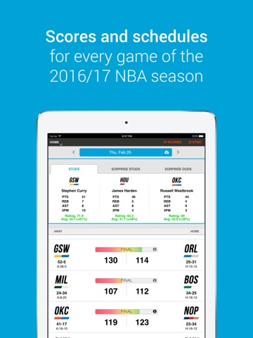 Spoiler-free Basketball has all the stats features you’d expect, plus a few unique ones. Who were the best and worst performers of the day? Find out from Studs and Duds. Go beyond the usual stats with our Boxscore — see a player’s stats as well as the difference compared to their normal average and the percentage they’ve contributed to the team. Also, Team High and Game High stats are always highlighted.