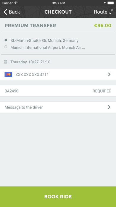 For airport transfers proceed with ordering a Premium or Business Class Transfers. Based on your flight data the driver will check your arrival time and anticipate you with a name sign at the airport. Your driver will await you after the luggage claim area or the airport "meeting point". The contact info of the taxi company will be sent together with the order confirmation ("ride dispatched"). Child seats or luggage needs can be requested when booking. During the ordering process the transfer costs will be authorized, then charged and invoiced by email to your credit card. A variety of other payment media - such as. Paypal, bank transfer or a Airplus corporate acccount - are available.