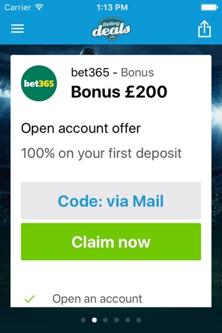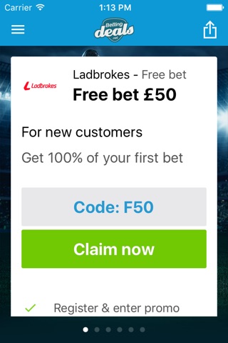 Bettingdeals is your daily source for free bets, price boosts, enhanced odds and any kind of online betting bonus. Get the best deals and promo codes from the best bookmakers in the UK, before your place your next bet. Never miss a great deal again.