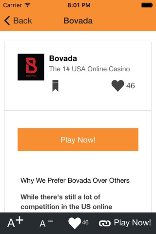 Beginners with this app, can use a “ranking by like” system to find a safe casino , also the expert ones can use this app to stay tuned on new casino bonuses and online casino upgrades.