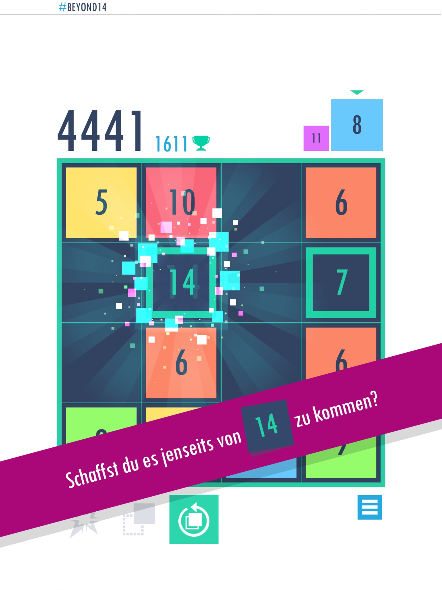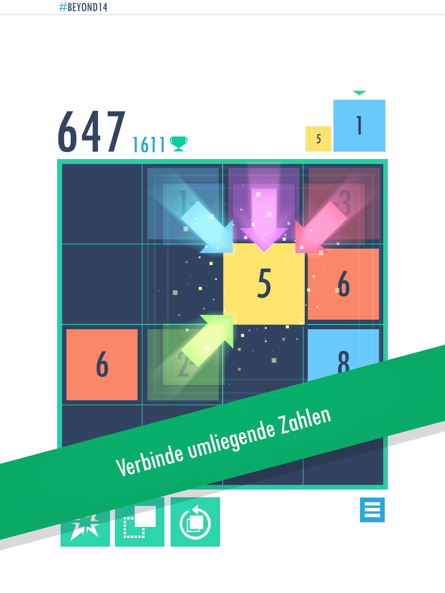 Beyond 14 is a simple & easy to pick-up puzzle game. Your aim is to place similar tiles next to one another to combine them and increase their value!