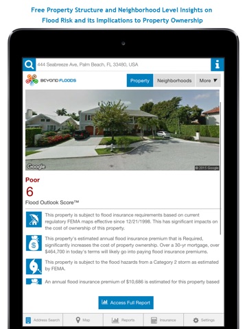 If you want to learn more about your property based on information presented in our free app, then please avail our In-App Purchase of a non-recurring 3-month subscription to Full Flood Outlook Reports for $4.99, which adds the following additional features to the free app on a single iOS device: