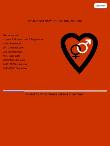 Des Weiteren kannst du sehen wie viel Prozent du von deinem bisherigen Leben in der Beziehung verbracht hast.