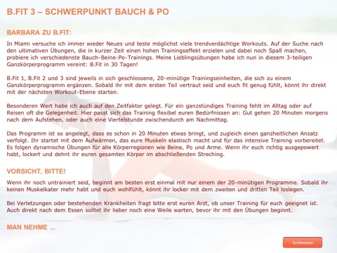 In den drei Teilen von Barbaras neuem Workout B.Fit 1, 2 und B.Fit 3 liegt der Schwerpunkt auf jeweils unterschiedlichen Körperbereichen, wie Beine und Po, Bauch, Taille und Oberschenkel. Die Übungsprogramme bestehen aus in sich geschlossenen Einheiten und können sowohl separat, als auch hintereinander trainiert werden.