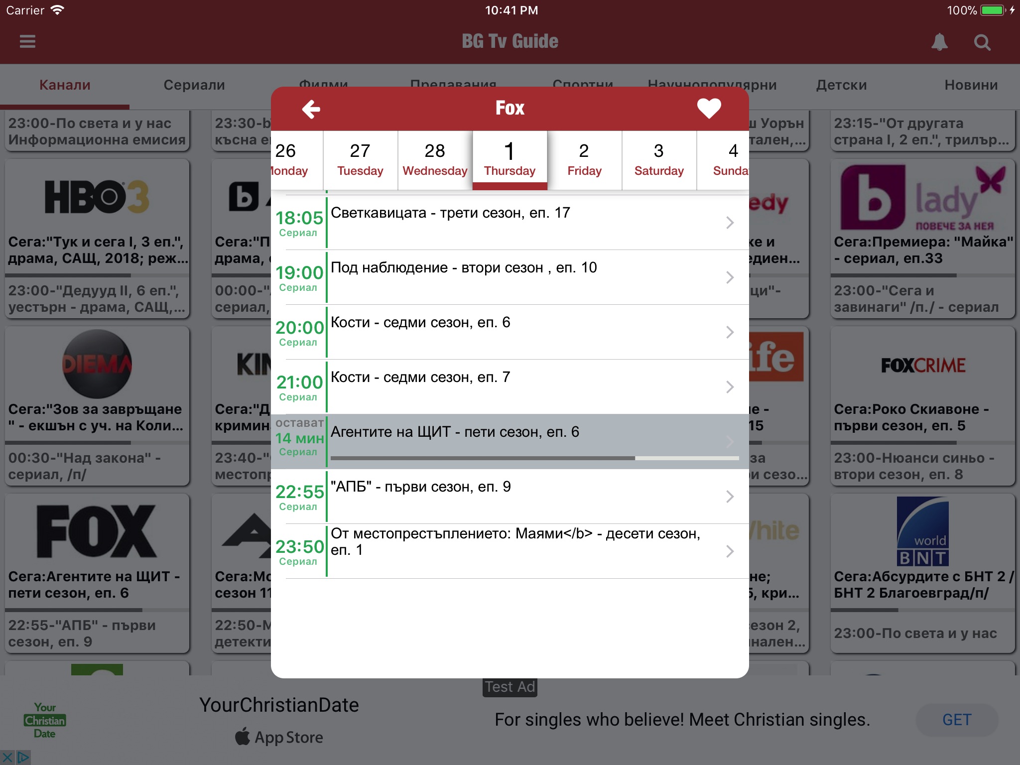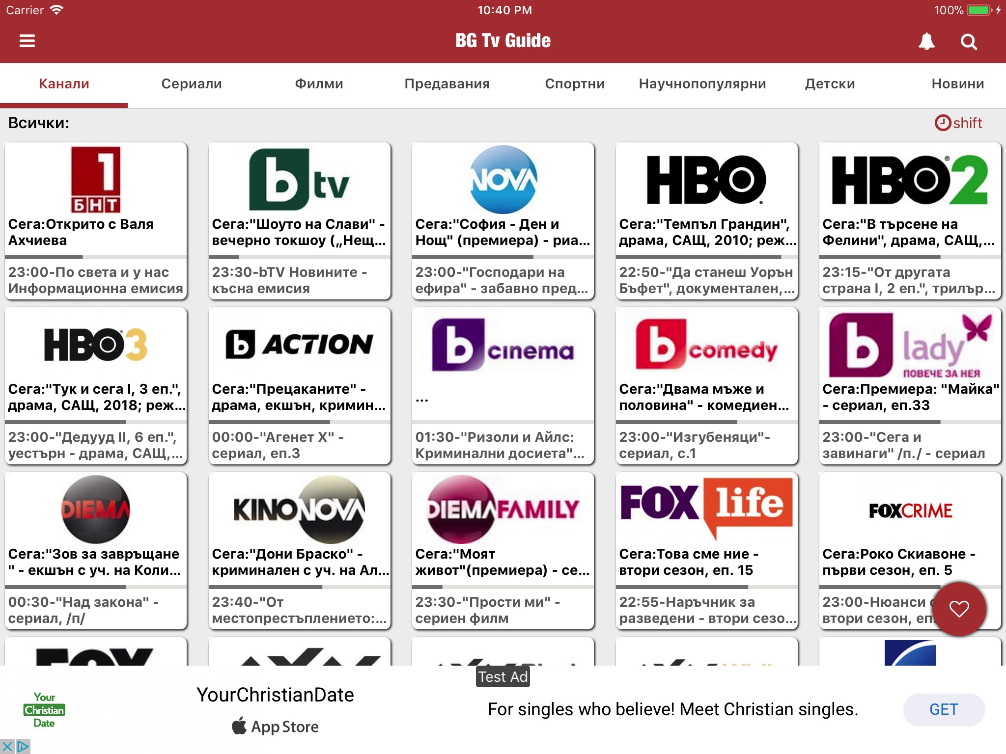 С БГ TV Guide можете да следите седмичната програма на над 100 телевизии излъчвани в българските кабелни и сателитни оператори.