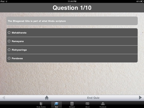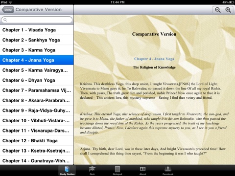 This app also includes an interactive quiz to test your Bhagavad Gita knowledge.