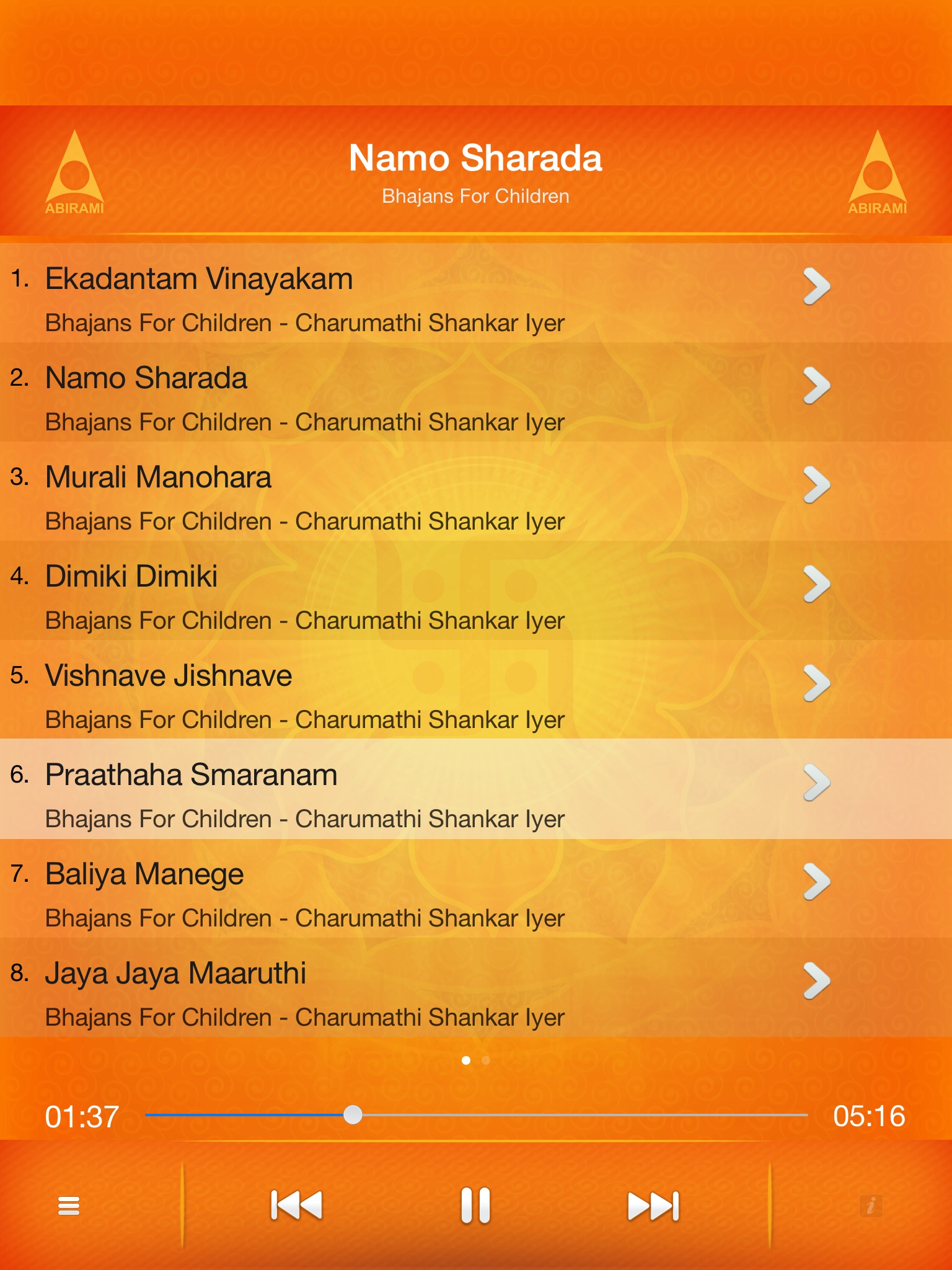 Smooth lyrics playing animation will help your kids to follow the bhajan in a easy manner.