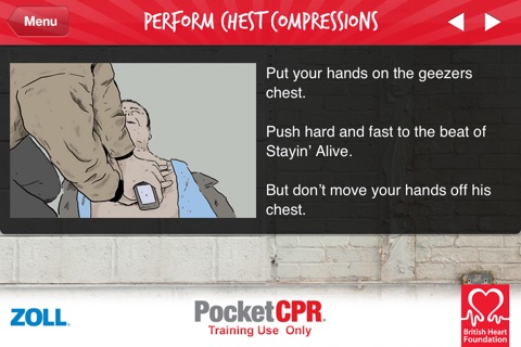 The British Heart Foundation PocketCPR provides REAL-TIME feedback and instructions on Hands-only CPR that empowers ANYONE to learn and practice CPR, so that they can be READY when seconds really count!!! The technology is the same as that used in the ZOLL PocketCPR for actual rescue from sudden cardiac arrest.
