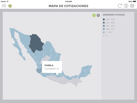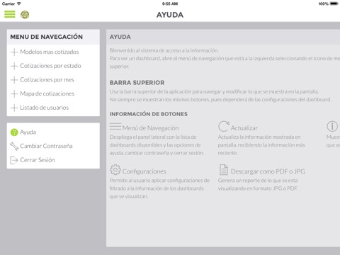 La aplicación móvil de Business Intelligence (BI) de ABC Leasing permite consultar indicadores de negocio clave de forma gráfica.