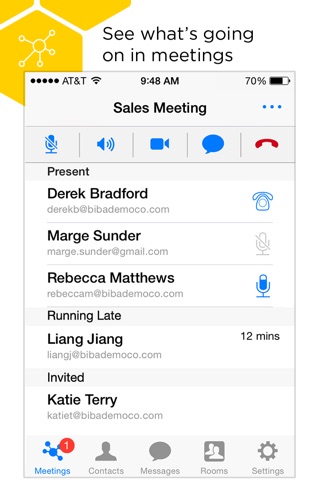 Biba takes the pain out of conference calls starting by making them easy to schedule from Outlook, Google or other work calendar. Logging into the app offers powerful features like "we call you", remote mute, and a call roster to see who is on your call. Meeting attendees who dont have the Biba app can still join using a dial in and passcode the Biba sends out immediately prior to the scheduled call.