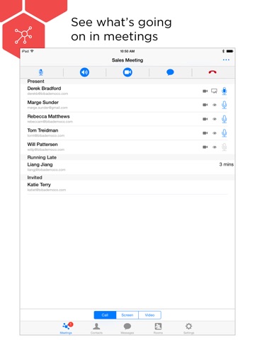 Biba delivers a powerful but simple screen share experience, with HD quality display and roster features to show who’s viewing your screen. Meeting attendees without the app can view the screen share with their browser using a meeting web link.