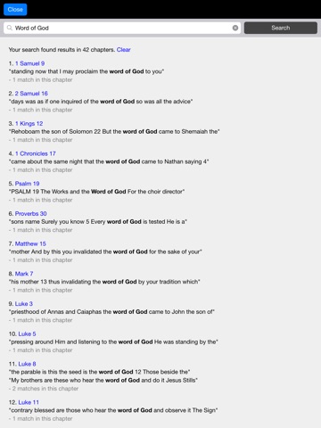 Search function to find the chapter a verse or word is found in.