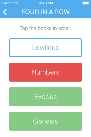 I have always struggled with knowing the order of the books of the Bible, and this app changed my LIFE! I can now look at the little and big people in my life, and know there is an app to help them in there Bible book memorization! Its truly the best Bible book, memorization, educational, fast tapping video game I have ever downloaded onto my iPhone! Thanks Yall!!!