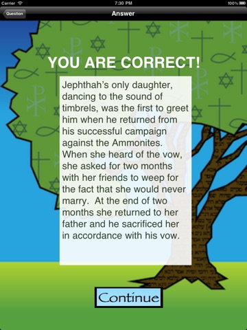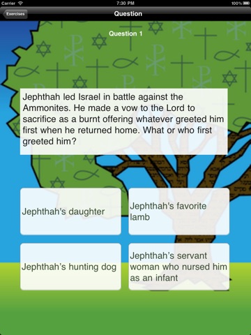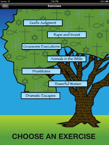 The Bible Drama Exercises app for iPhone will help you learn more about the Bible through an interactive quiz program. There are seven questions in each of seven categories: