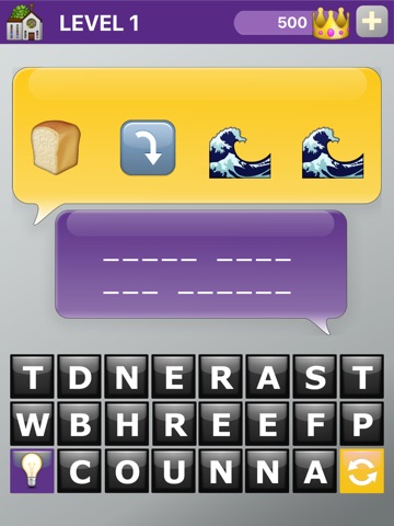 Earn crowns for each correct answer. Use crowns for help on later levels: Remove Letters that arent used, Reveal Letters in the answer or even skip a level, using Reveal Answer.