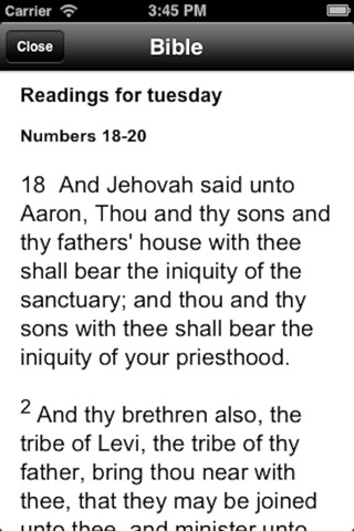 I would love this app if a different translation were used. I find the antiquated English (thee, thou, maketh, etc.) very distracting. The app is great; however, in helping a person realistically read through the entire Bible in one year.