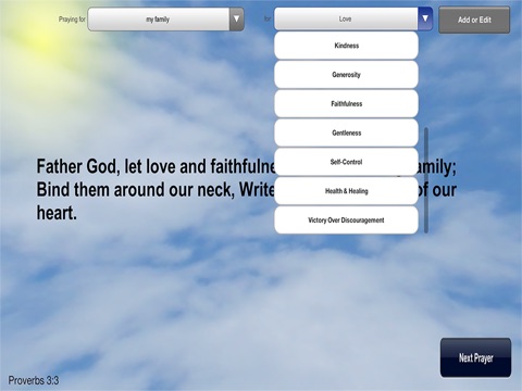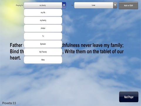 I have always appreciated the concept of praying based on Scripture itself. This app helps me by customiizing the prayers with the names (and gender) of the person/people for whom Im praying. I love it.
