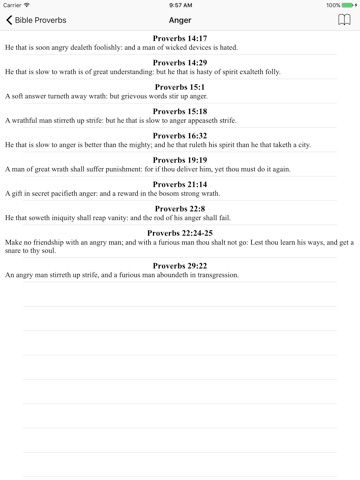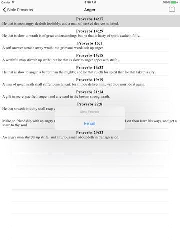 The wisdom of the Proverbs of Solomon, broken down into themes to provide encouragement, insight and comfort in a simple and quick to find format with email integration. Supports KJV, HNV and NIrV translations.