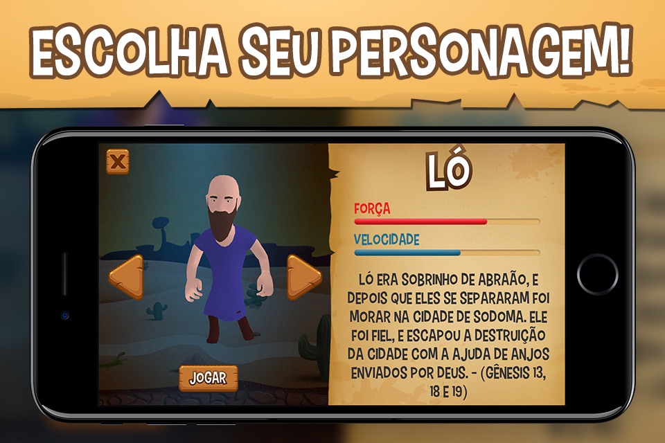 No jogo, a criança conhece uma parte da história do personagem escolhido, com o qual ela participa de uma corrida e coleta alguns itens que somam pontos. Ao final da corrida, ela conhece mais uma parte da história desse personagem e desbloqueia o acesso para correr com novos heróis da Bíblia.