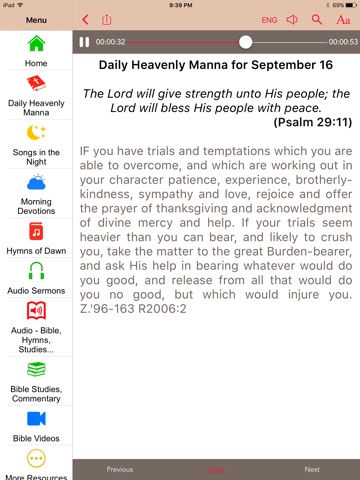Nice app Many options, easy to get around. & a free bible study! Thank you God bless