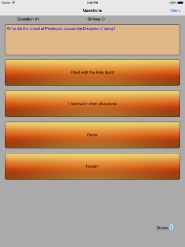 Id be interested in buying the app. There may be a an error, but the programmer seems open to receiving feedback, and testing you general biblical knowledge this way is fun.