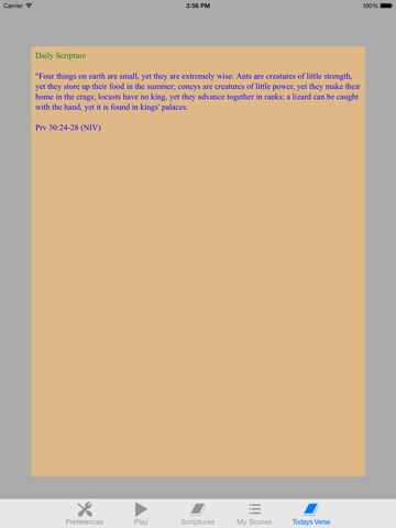 There are only 50 questions. Really. After that, it starts repeating indefinitely assuming you dont strike out before that. The programmer needs to adjust some questions and answers. For example Jesus was arrested in the Garden of Gethsemane which is IN the Mount of Olives. Both answers are right technically. (Check out Luke 22:39 as well as Matthew and Mark.) Also there were no paying upgrades offered in the game to grant more questions. Also, I never saw a daily scripture. This is an ok start to a free program, but if you want to test people give a couple stages that increase with complexity and difficulty then thrown in a little graphic to make it not look bland.