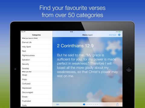 I love this app. I can now fill up my cup with encouragment any time or place, Without having to search through the back of my bible.