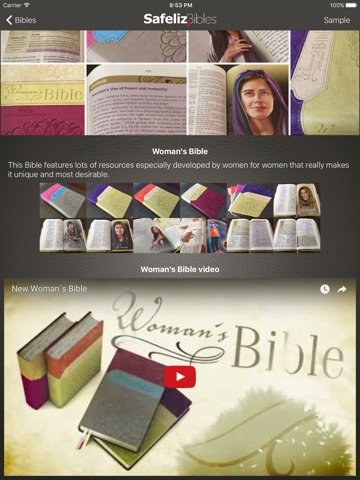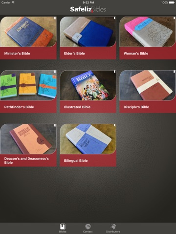 App Safeliz Bibles allows to see all the Bible editions published by Safeliz in cooperation with the General Conference of the Seventh-day Adventist Church. Discover their colors, covers, and additional resources. Available in three languages: Spanish, English, and French. You will be able to see images of each one of the Scripture presentations, and a gallery of photos of the tables and the inside content. Find all the information about the Womans Bible, Pathfinder Bible, Elders Bible, Deacons and Deaconesss Bible, Disciples Bible, Bilingual Bible, and more. Know our distributors around the world.
