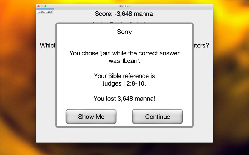 - Single player mode provides a timed game that allows you to enter your name and score to the Manna Leaderboard. If you are having trouble, just wait and wrong answers will be removed.