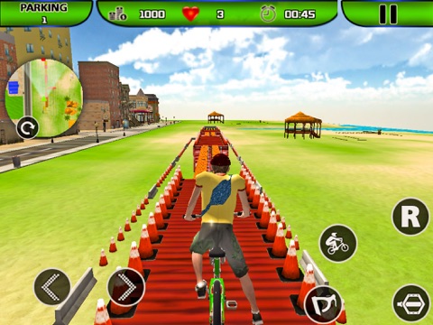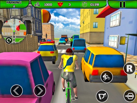 You are in a furious city with high speed BMX Bicycle. rush towards your parking point before the time exceeds without hitting any other bike, car, trucks or even pedestrians. drive your bicycle at high speed to park in the impossible parking areas, perform stunts but avoid accidents.