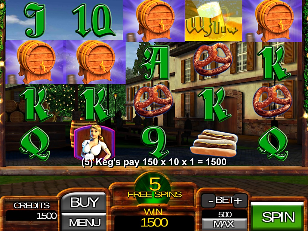 Bier Garten is a German "Octoberfest" inspired, 5x4 Video Slot Game featuring bet-able reels that allows over 1000 ways to pay. Each reel allows a maximum bet of 5 credits, which yields a maximum total bet of 250 credits. The free spin bonus game with stacked "Beer Girl" symbols, Free Spin Retriggers, and Beer Glass Super bonus pay out with aggressive volatility. All of our games use real math and true industry standard random number generation for maximum Las Vegas excitement. Priced at less than one "max bet spin" at your local casino slot machine, you will truly enjoy the exciting experience offered by this game. This is a follow on to our wildly successful slot game "Wizard of OZ Silver Slippers" which is sold separately. This free version allows the player to play for free. Every day you receive a wheel spin which allows you to win credits to play on the game. Additional game credits can be purchased in the game menu.