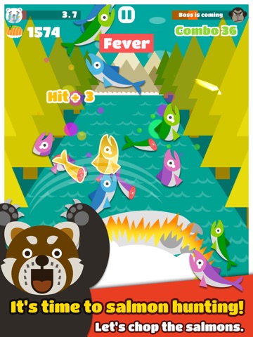 As the salmon jump out of water, swipe your finger across the screen to make the bear slicing action.