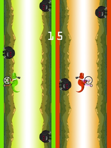 Tap on the left side to move the green dino, and tap the right side to move the red dino. Its simple yet very addictive.