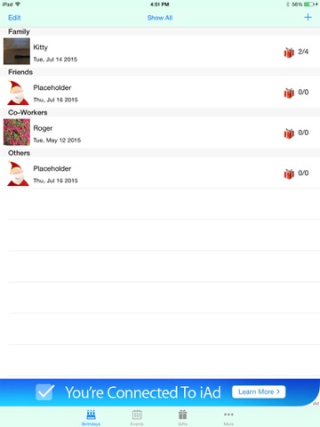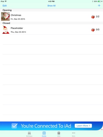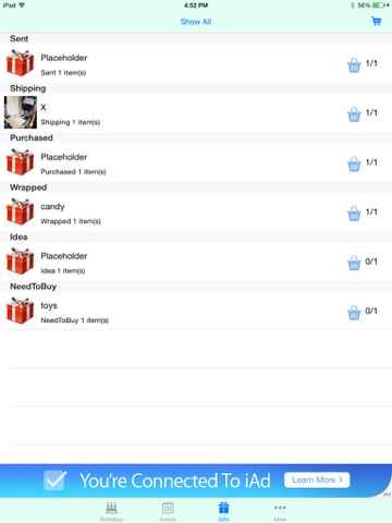Turn on the iCloud feature to keep your gift list synced between all your iOS devices.