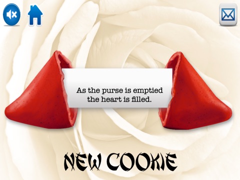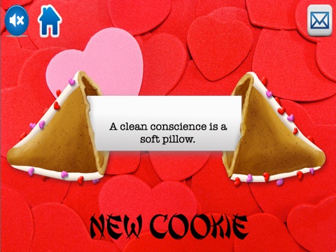 •Tap “New Cookie” to start over again or tap “Home” icon to choose a different type of fortune cookie!