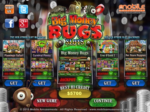 Big Money Bugs Slots the BEST Bug themed lucky vegas casino slot machine / pokie from Mobile Amusements where you can win a massive virtual cash fortune!