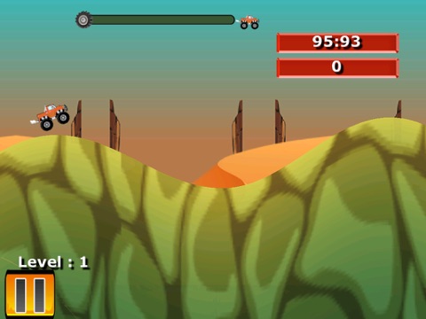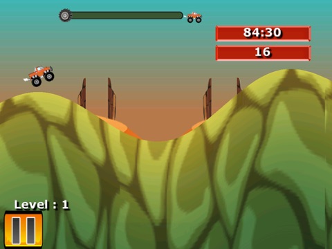 Speed up down hill and let go to jump and fly above multiple hills with Monster Trucks.