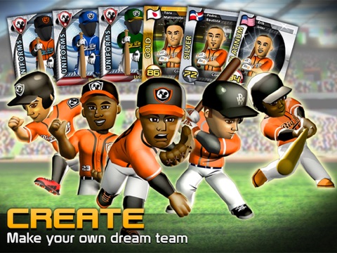CREATE your own unique dream team, COMPETE against friends and opponents from around the world, WATCH your team battle it out on the diamond, BOOST your player’s pitching, hitting, fielding, and other skills, score R.B.I.s and get ready to win the Daily Pennant for the ultimate BIG WIN!