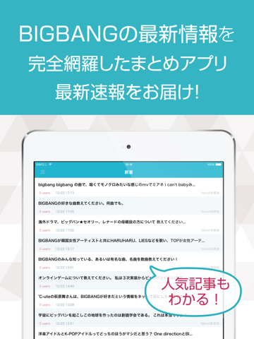 さまざまなサイトから配信されるビッグバンの話題をまとめてチェックできます。