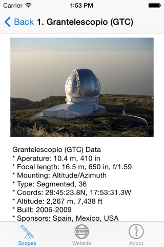Big Mirror Scopes provides a handy reference for large reflector telescopes. The material is abstracted from the website: en.wikipedia.org/wiki/List_of_largest_optical_reflecting_telescopes.