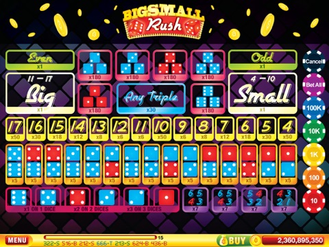 BigSmallRush is all FREE and youre just a tiny step away from the most interative Sic Bo game in the world! Its so EASY to play and youll start WINNING in just seconds!