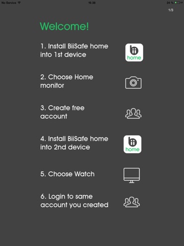 Download the BiiSafe application to two devices of which the other one can serve as a monitoring device and the other one as a watching device. The devices are automatically connected and the system is ready for use in just a couple of minutes. You can add several devices to one account and use the same watching device to view all the monitoring devices. You can also view and operate the monitoring devices with a browser from any device by logging into your account from a web browser.