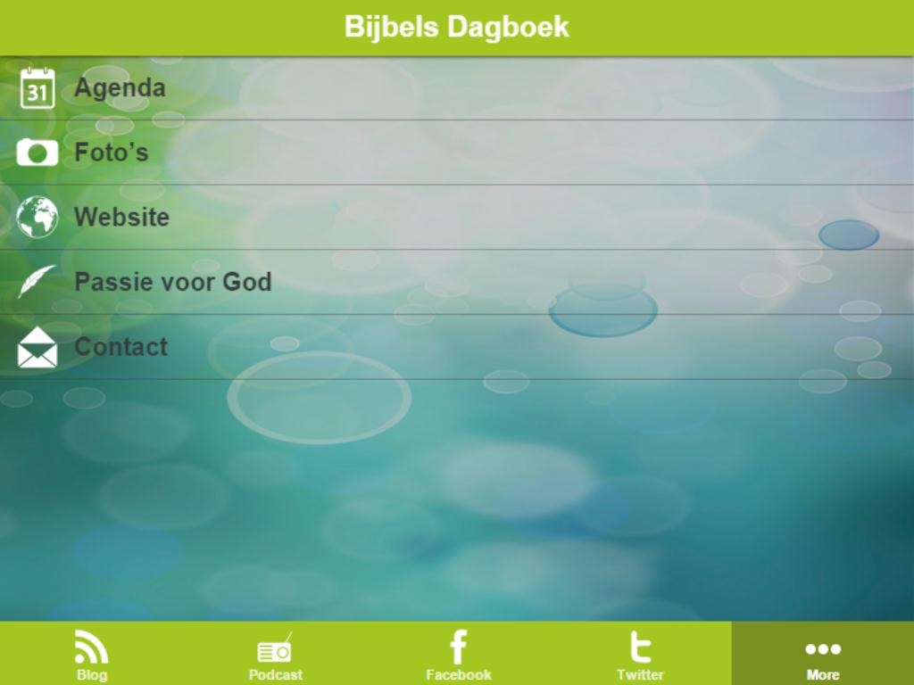 Bijbels Dagboek. Met deze app kunt u: Podcast beluisteren Twitter feed bekijken Facebook bekijken Agenda bijhouden wanneer ik spreek. Direct contact met mij opnemen Elke dag 10 minuten met God bezig!